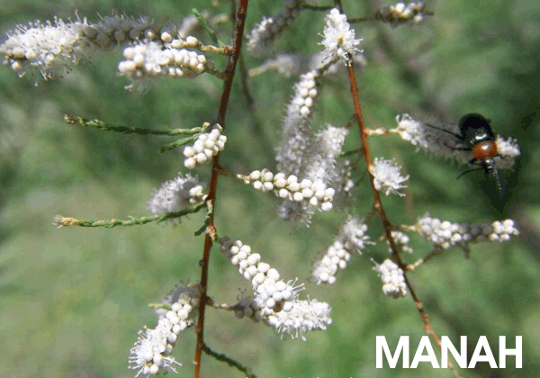MANA ou MANAH - A palavra manah vem do hebraico "man hu", o nome é dado à seiva que brota da arvore do tamarisco; no deserto do Sinai esta seiva resseca durante a fria noite e cai no chão em forma de pequenas pérolas muito doces. Até os dias de hoje os beduínos utilizam o manah em sua dieta.